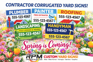 Yard signs create terrific exposure for your business, event or sale. If you get them out when the ground thaws, you can get a huge jump on your competition.